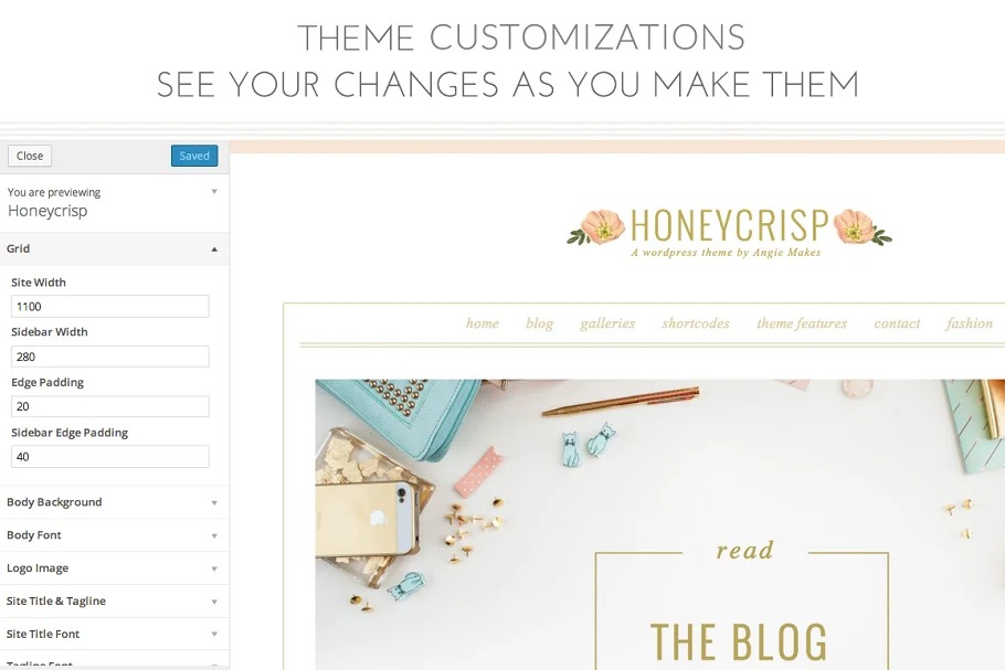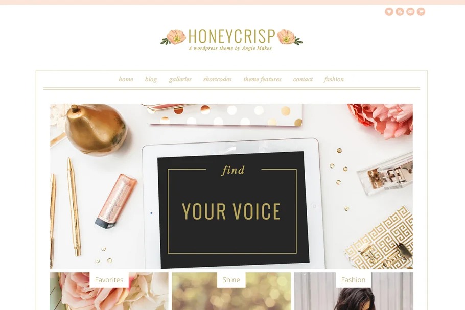 Presenting the Honeycrisp, the most recent topic in another line of Angie Makes subjects. The Honeycrisp highlights a smooth, female plan with heaps of incredible choices for customization alternatives and convenience. Heated into the subject are astonishing typographic controls, shading controls, the capacity to set your site and sidebar width, astounding shortcodes, thus considerably more. This topic allows you to modify the plan of your site utilizing WordPress’ live see include. Arranging your WordPress site has never been so natural.