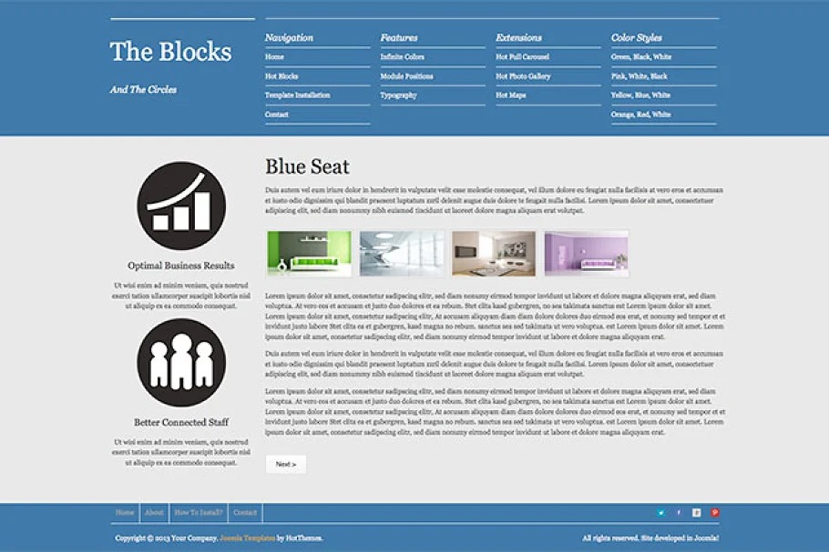 Responsive design controlled by jQuery Mobile and brick work script, viable with all gadgets (work area and mobiles) and all screen goals. Records for Joomla 2.5 and 3.x are incorporated.