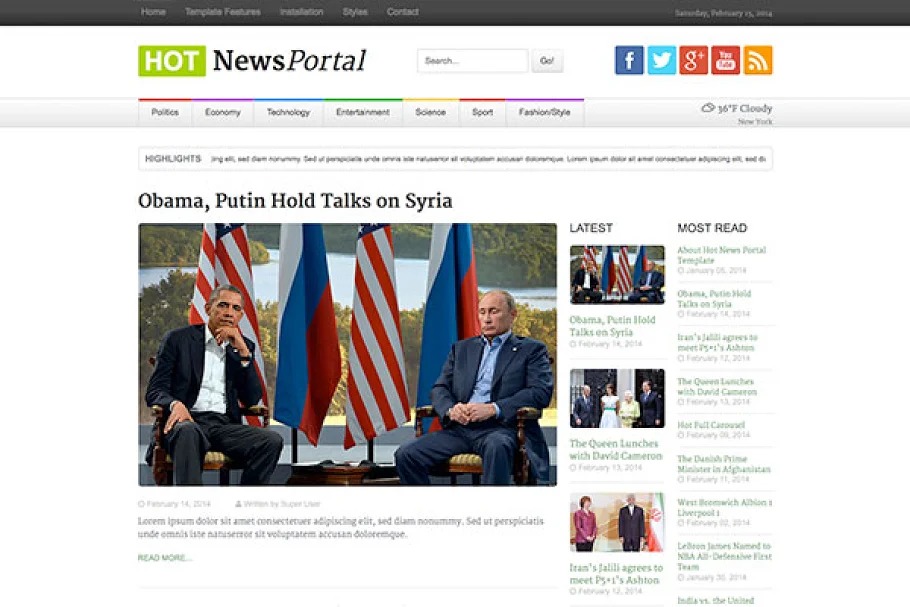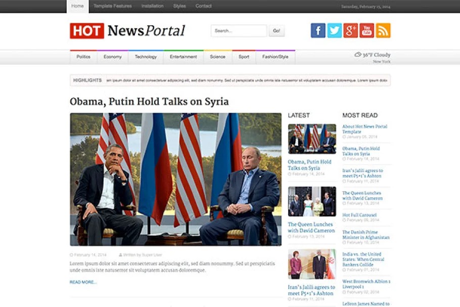 Sweltering Full Carousel, Hot Video Wall, Hot Weather 2, Hot Maps, Hot Carousel and Hot Gallery modules are incorporated with Hot News Portal format. All expansions are pre-introduced and arranged.