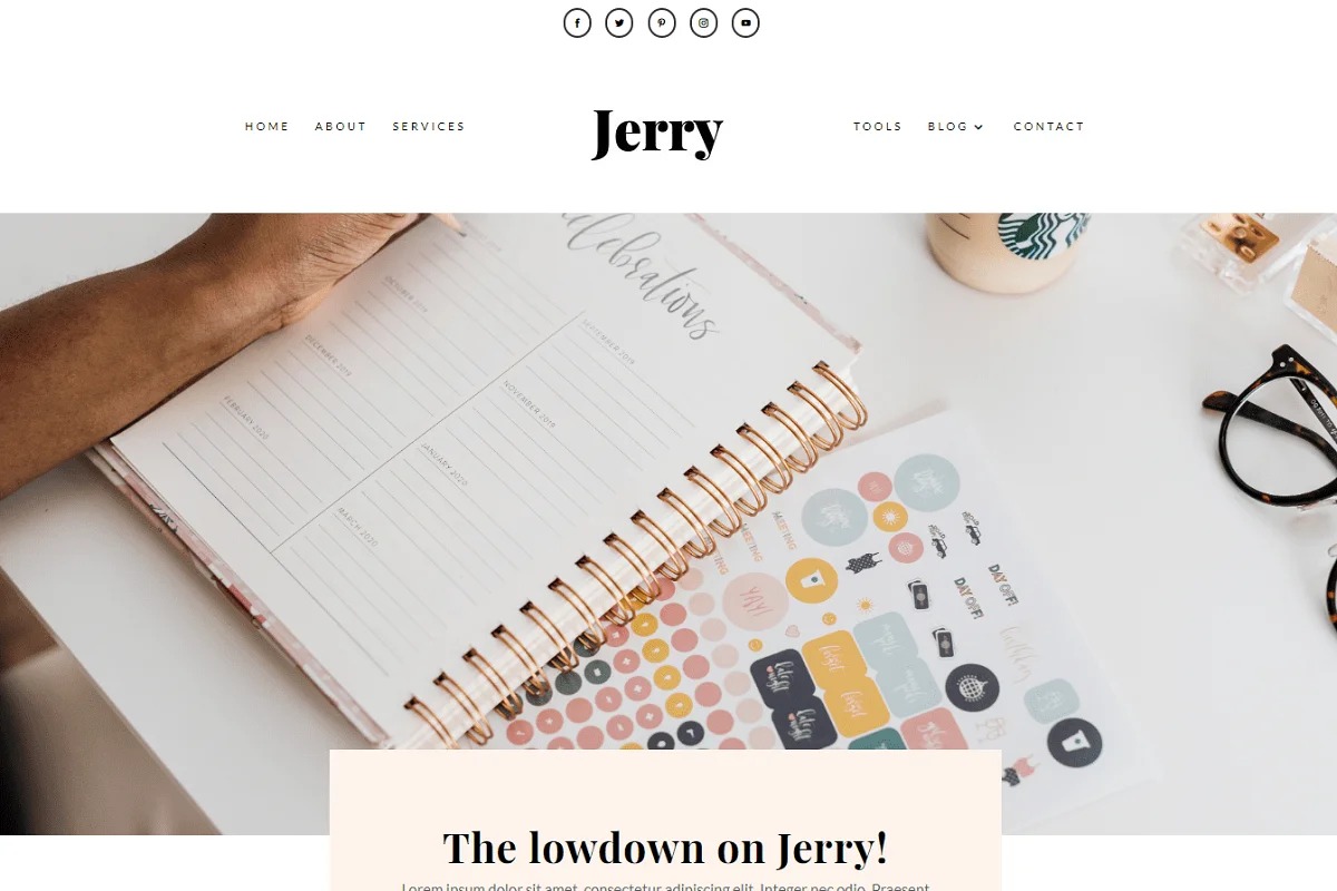 ★Jerry Child Theme .compress record ★Page and post designs ★Read Me .pdf ★Online Set up directions