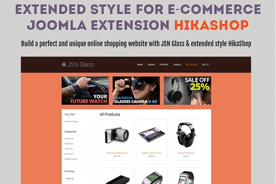 JSN Glass layout – an ideal Joomla format for your perfect virtual store with brilliant tones and knockout highlights. A rich format with the all-inclusive style of Hikashop – an amazing internet business expansion that will fill in as a top of the line establishment for your online store. Amazingly incredible together, this matching supports the focal point of your clients on your items. Also, JSN Glass is completely responsive and works flawlessly with K2 just as the Kunena segment.