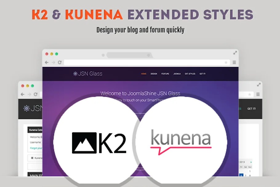 * Create blog and gathering effectively with styling backing of JSN Glass for 2 famous expansions: K2 and Kunena