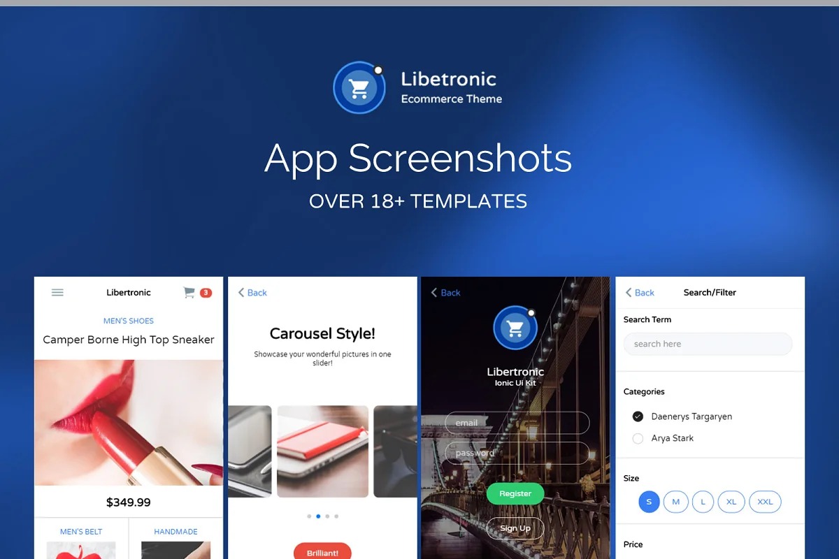 Libertronic is an Ionic 2 execution propelled by the Liberty UI pack, giving you a generally cleaned world standard UI to launch your ionic 2 shopping application.