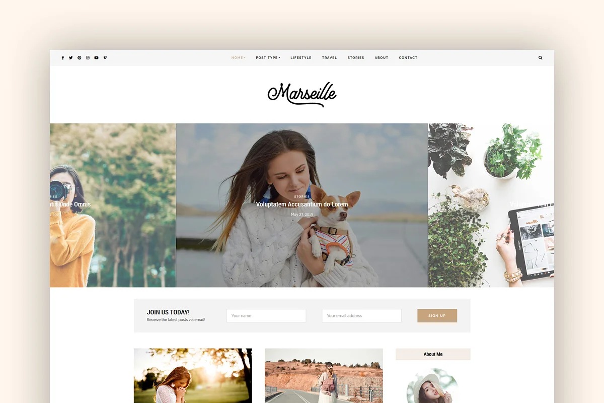 Marseille WordPress Theme – Blog Theme – Premade Blog Themes – Responsive Blog Templates – Blog Design – Travel – Lifestyle – Fashion