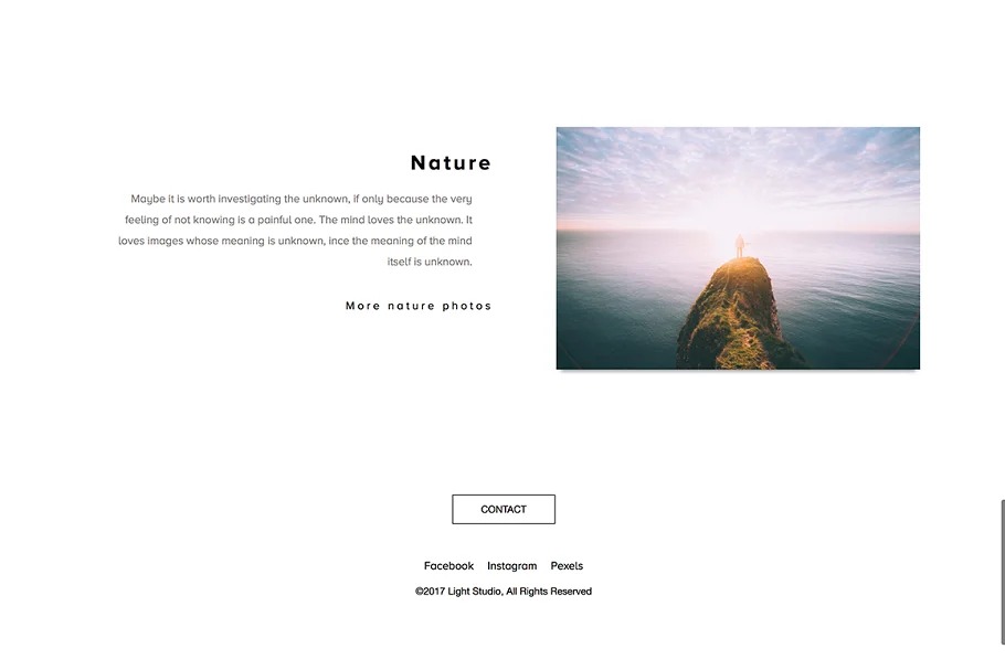 Light Studio is an advanced and expert layout for picture takers, and imaginative individuals. It is constructed utilizing standard web advances like HTML5, CSS3, JS, Bootstrap and jQuery. This format is ideal for picture taker, inventive planners, individual blog and everyone. All records are efficient and reported so anybody can utilize, alter or tweak this layout. Examine the live see.