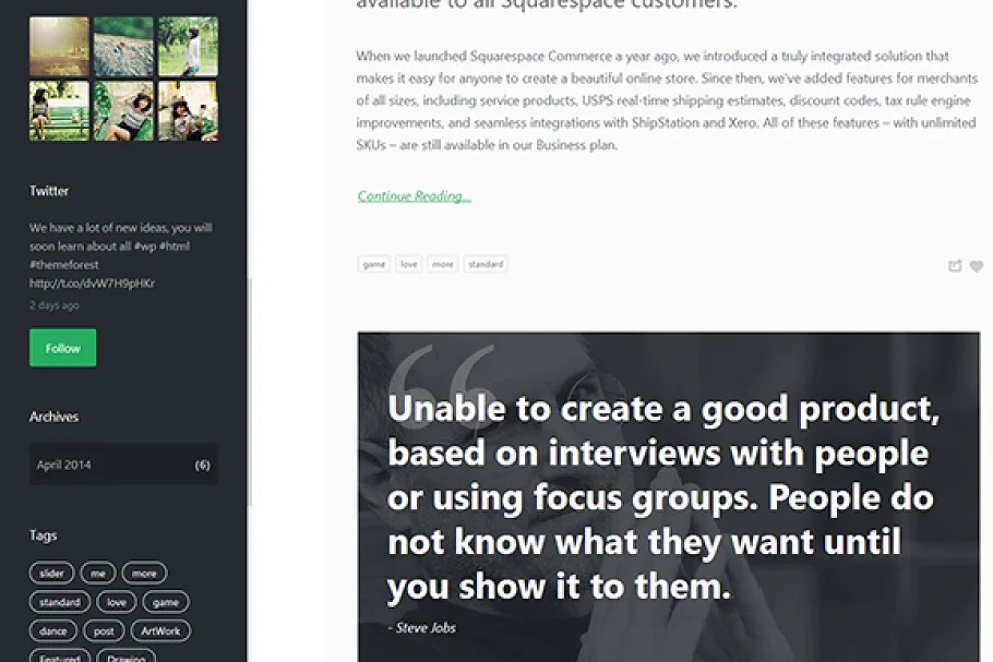 Spotless, Modern Design can be utilized for a site Fully Responsive Built with HTML5 and CSS3 Valid HTML5 Custom Logo Upload Custom Favicon Upload Cross-program viable (IE9+) About Page Shortcodes Page Arhives Page Contact Page Typography Page Team Page Post imparting box to social symbols Custom Widgets (My Photostream, My Video, Calendar, Archives, Newslleter, Twitterm, Dribbble and that’s only the tip of the iceberg… ) Clean Code 5 post sorts (video, sound, quote, picture, connect) Excellent Support 9 PSD Files Included and significantly more …
