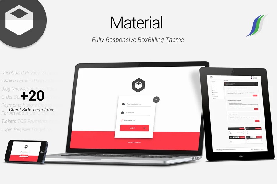 Material is Fully Responsive and Customized BoxBilling Theme. It highlights Google Material Design and Its belongings. Alongside incalculable Templates and Pages! Energetically Recommended for the individuals who need to have a Leading Hosting or Customer Support Portal.