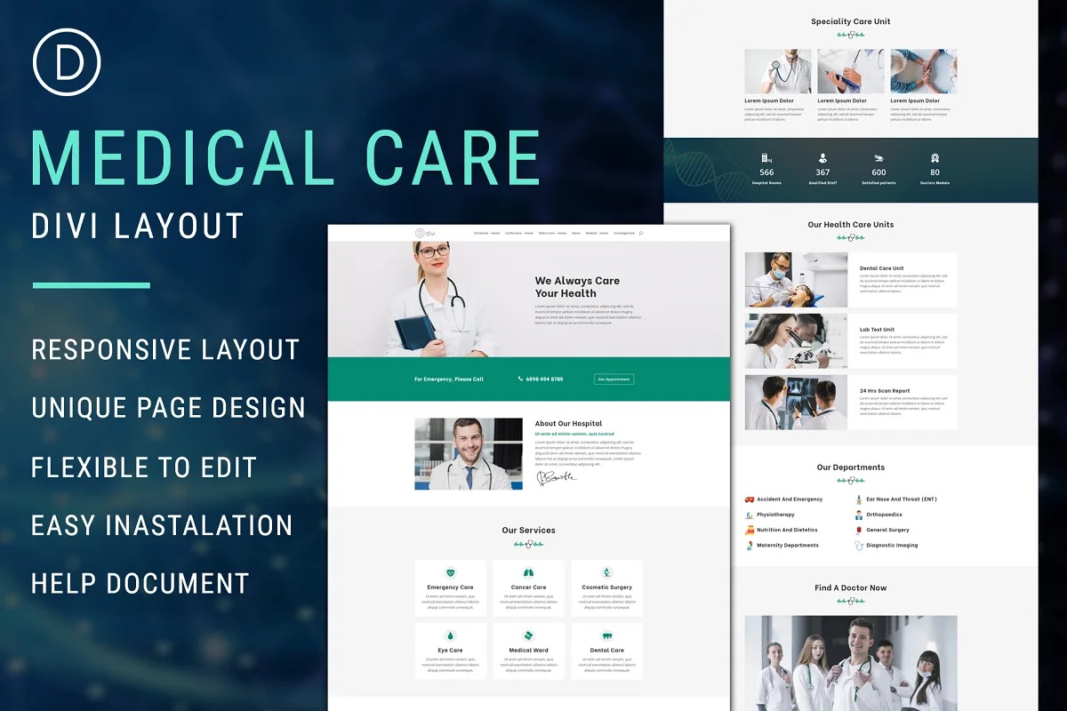 Clinical Care is basic and adaptable Divi design page. This format is reasonable for clinical consideration, medical services, facility, emergency clinic and specialists