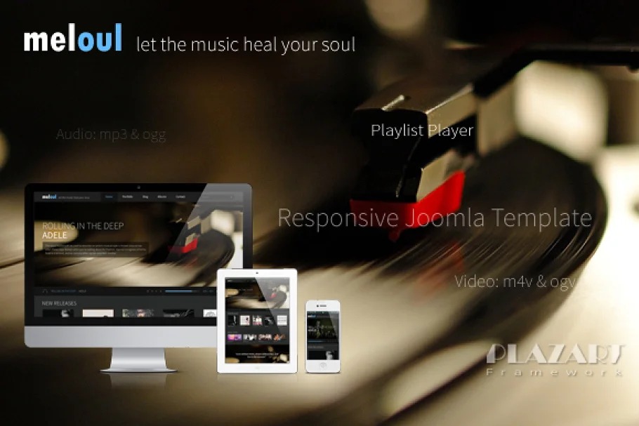 You can likewise make collection which showing playlist controlled by jPlayer. Meloul runs on Plazart Framework and viable with Joomla 3.0.