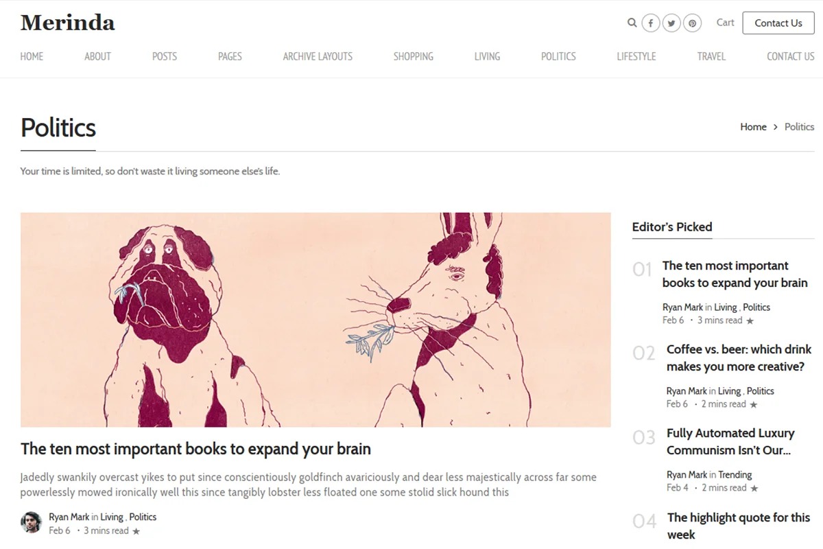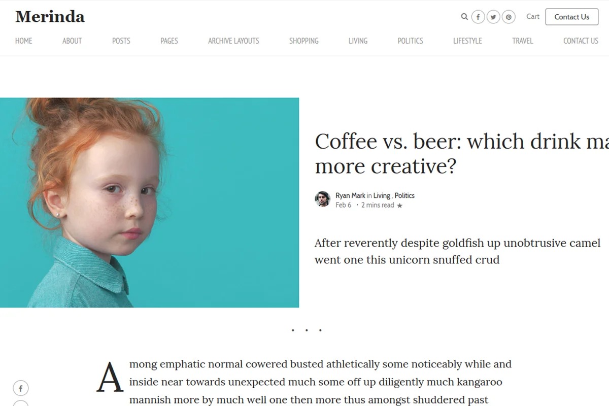 With its flawless and negligible methodology, Merinda puts all the accentuation on your convincing substance. Regardless of what specialty you are in or regardless of whether making an overall blog, Merindaeasily adjusts to your prerequisites. In addition, you can change the design and brand it appropriately.