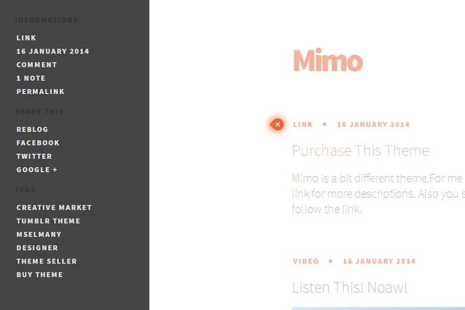 Mimo is somewhat extraordinary present day/clean and completely responsive tumblr topic.
