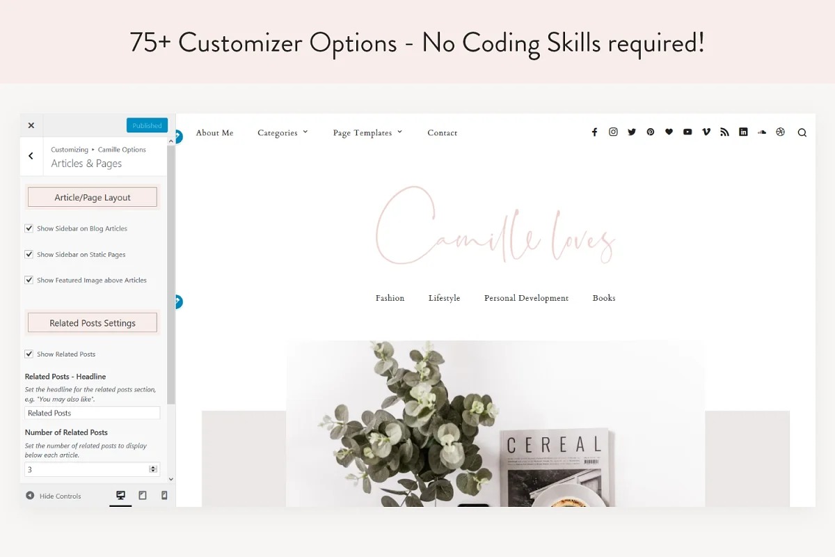 Camille is a female, current and completely responsive WordPress Theme totally appropriate for Lifestyle Bloggers or the individuals who need to begin a blog and don’t have any desire to issue with the tech side. Camille is the simple ‘arrangement and fail to remember it’ subject – yet in the event that you like to get innovative, there is A LOT of space for your customizations to absolutely make it your own.
