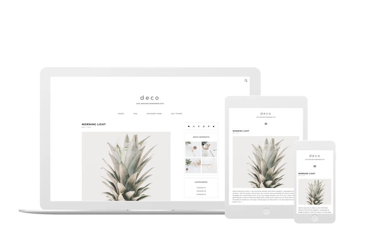 Deco Theme FAQ: https://deco.designbybloom.co/faq/General Bloom WordPress Theme FAQ: http://docs.designbybloom.co/classification/130-faqs