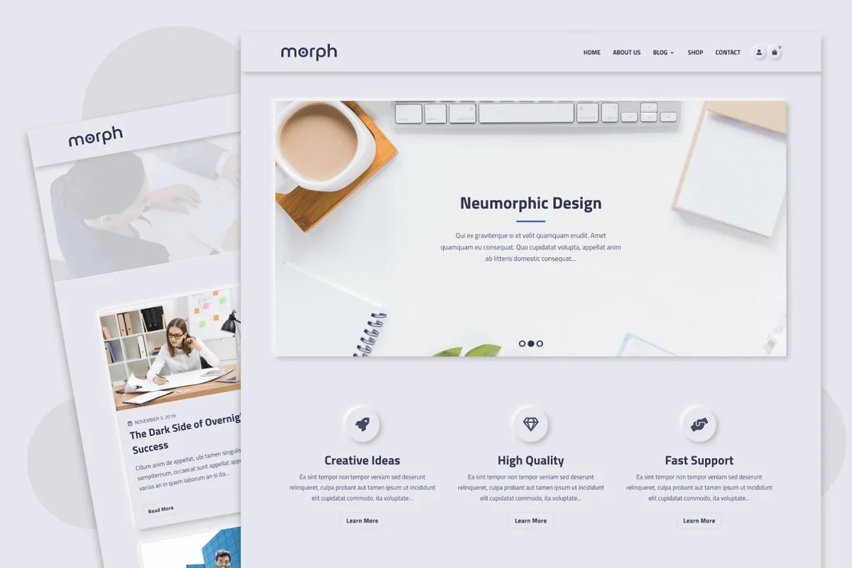 Transform is a perfect Neumorphism enlivened WordPress subject. Neumorphism is the most smoking plan pattern in 2020. Make your advanced and rich site utilizing Morph easily.