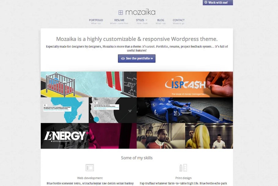 Mozaika is a profoundly adjustable and responsive WordPress topic and apparatus. With 3 presets to meet your requirements, it’s been particularly made for creatives. You’ll have the option to make a remarkable and pleasant looking plan for your site in minutes. It lets you grandstand your work in portfolios, yet in addition help you maintain your business with a private criticism framework and ideal coordination with WP-Invoice.