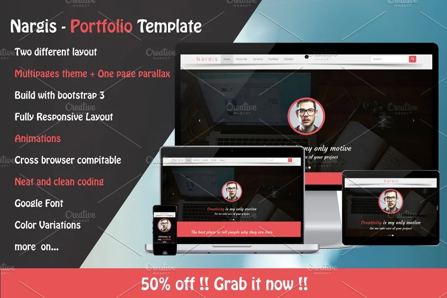 Nargis is a completely responsive, smooth, current and clean portfolio format.