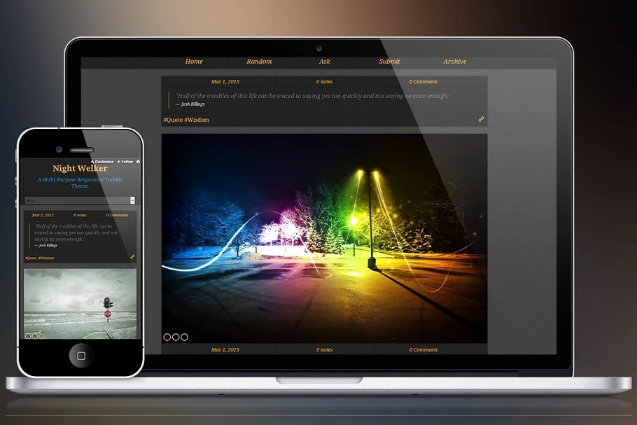 Night Walker is a clean and responsive format for a Tumblr blog, It accompanies an excellent picture slider for photosets and social highlights worked in including post sharing and disqus remarking mix, flickr and twitter channels. it’s not difficult to utilize and completely adjustable, you can alter the foundation, interface tones, posts, quote tones and everything and change the look effectively, and it accompanies a point by point documentation to assist you with doing that.