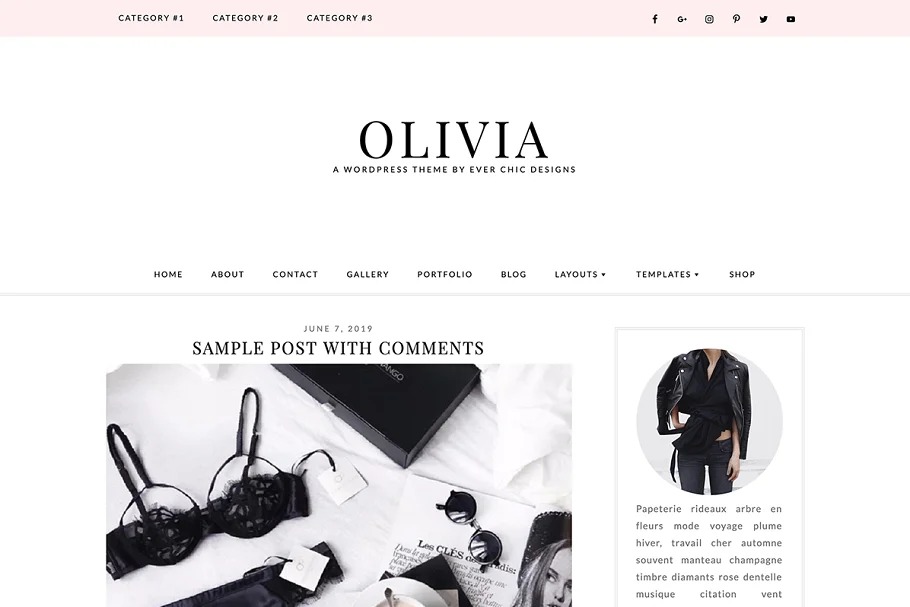 Meet Olivia: a female, stylish responsive WordPress subject ideal for bloggers, creatives, and organizations. Olivia highlights a slider to grandstand your photographs, a portfolio page, internet business incorporation, and significantly more!