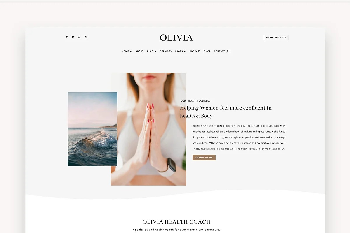 Olivia Pro is a delightful and present day WordPress Theme ideal for wellbeing and health mentors, for example, a digital broadcast or yoga educator.
