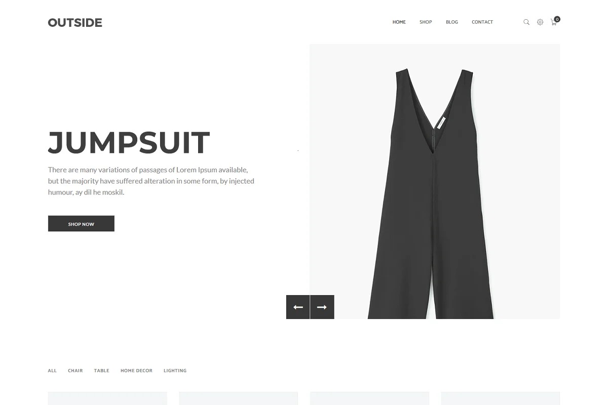 Outside – Minimalist eCommerce Shopify Theme rehearses every one of the advanced patterns and guidelines to give your web guests an interruption free involvement with perusing your website. With an excessively responsive format, it acclimates to all screen sizes and internet browsers with no problem.