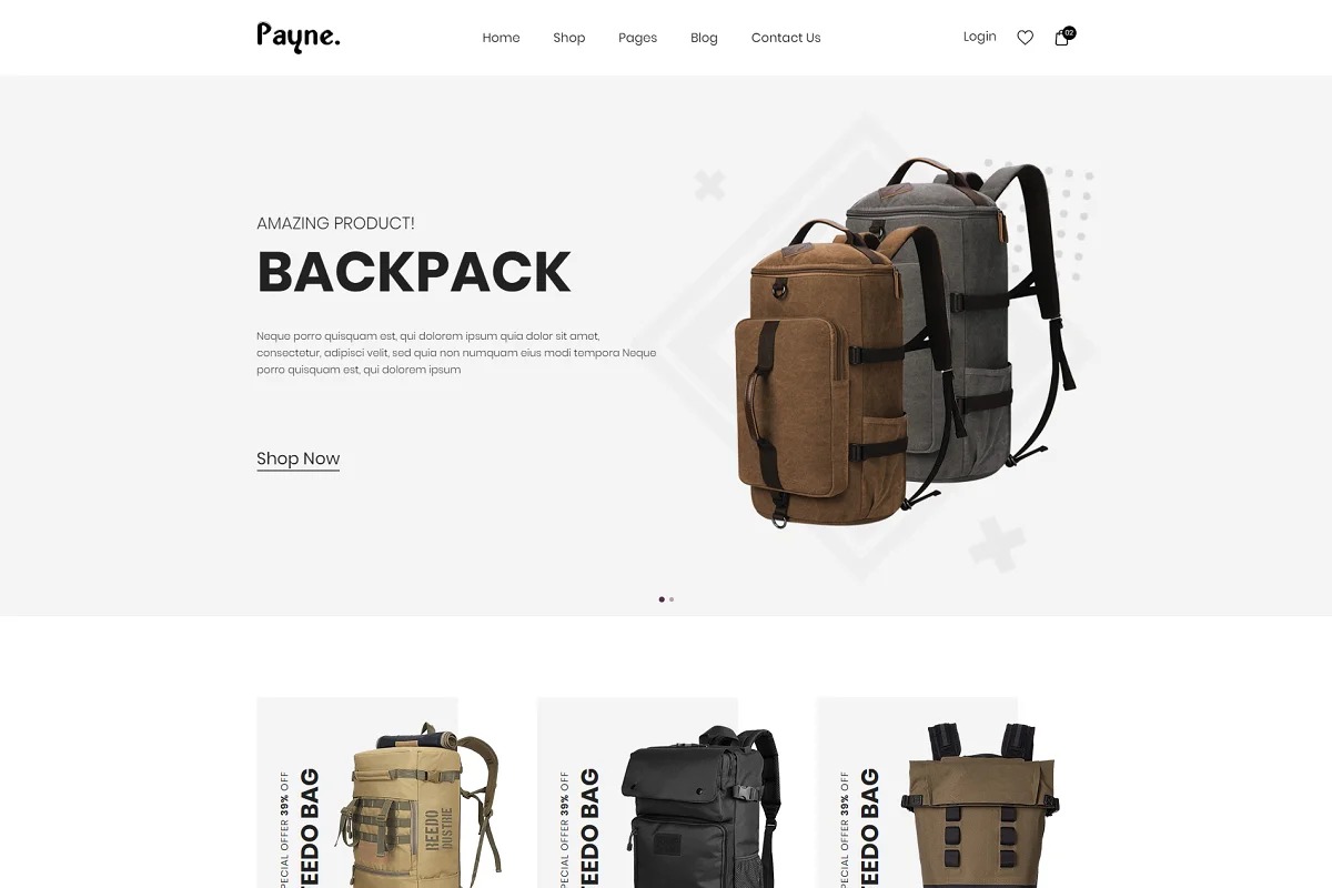 Payne – Backpack eCommerce HTML Template is an advanced HTML layout with rich white foundation. It is a huge layout with the best nature of plan and highlights. You can set the smash hit online home for your rucksack shop with Payne. In any case, Payne brings 2 Unique Home Versions, 8 Shop Pages, 12 Single Product Variations and 5 stunning Blog Pages adding up to HTML pages. This Bootstrap 4 layout is made with Sass as well. Besides, Payne has Font Awesome Icon, Google text style, Ajax Contact Form, W3C Validate Code, Well Documentation and No Console Error. What’s more, this layout is created with clean codes that are exceptionally SEO advanced to support your business up. Besides, Payne is a gadget responsive and Cross-Browser viable site format. It can fit the designs in any gadget size productively. We will furnish you with the further updates for nothing. Not a solitary hindrance hangs tight for you in the event that you purchase Payne – Backpack eCommerce HTML Template.