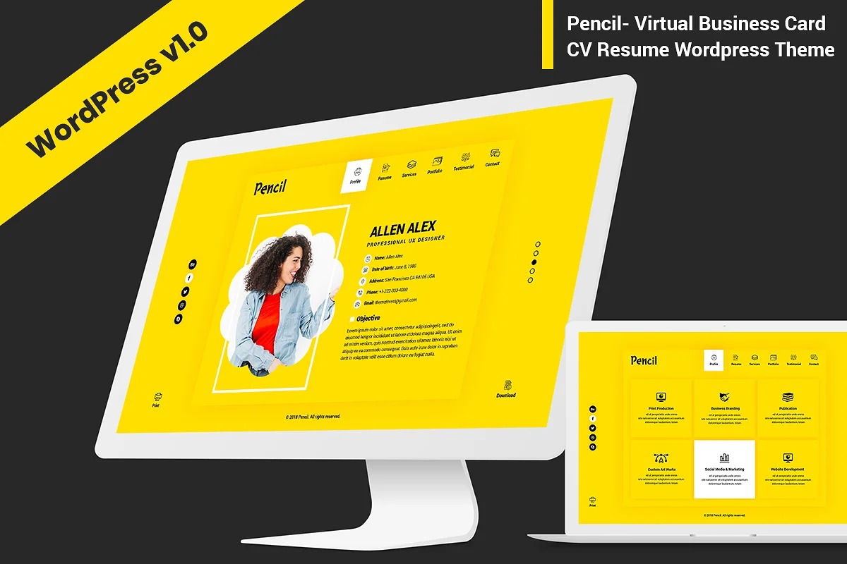 Pencil is a Clean and expert individual vcard, CV, Resume and Portfolio WordPress Theme. This Theme made for innovative, specialists, Personal resume, cv, Web fashioner, visual originator, picture taker, business, specialist, instructor and Much more.