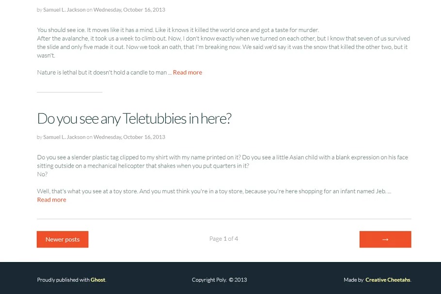 Poly is a completely responsive topic for Ghost with level plan and smooth CSS3 advances.