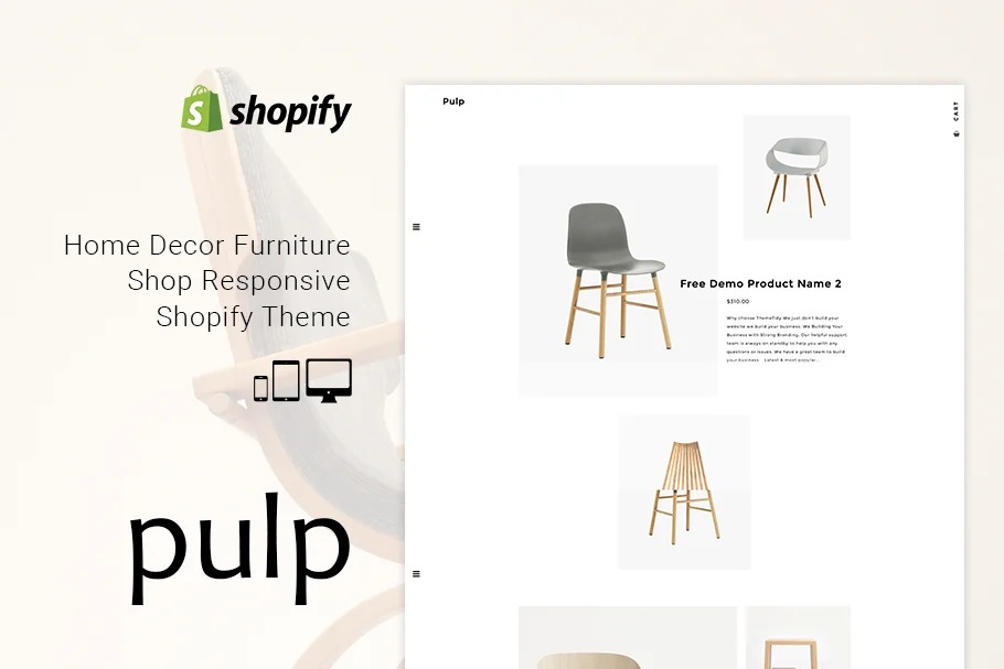 Mash is an advanced and clean Responsive Furniture Shopify Theme. Why Pulp is so Special. Since we have novel and change clean basic plan. Our Pulp Shopify Theme is Supper Responsive Layout. Additionally the principle strength of our Pulp Shopify Theme is Advance Feature List. You can without much of a stretch arrangement your store Because Our Pulp Theme have Advance Theme Settings Option.