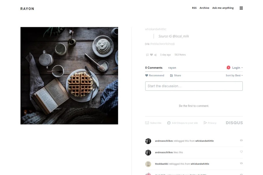 Rayon is a perfect and wonderful tumblr topic with workmanship network design and boundless parchment. It upholds all posts type and completely responsive.