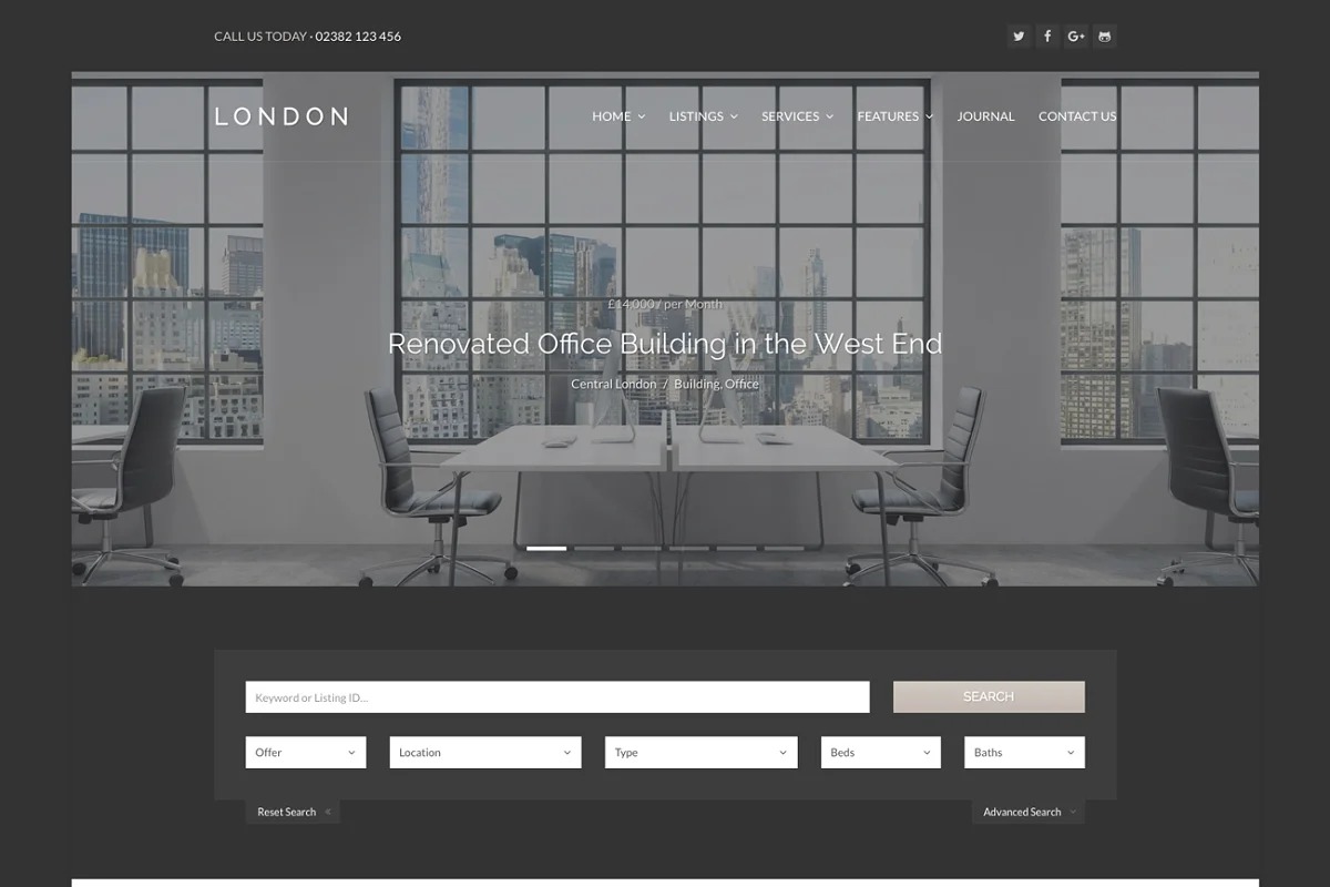 Aside from the landing page layout and a full-width format without sidebar the topic accompanies an excessively convenient apparatus to show your properties. When applied to a static page you can set up your custom postings page with the question manager. Track down some extra information in our live demo.