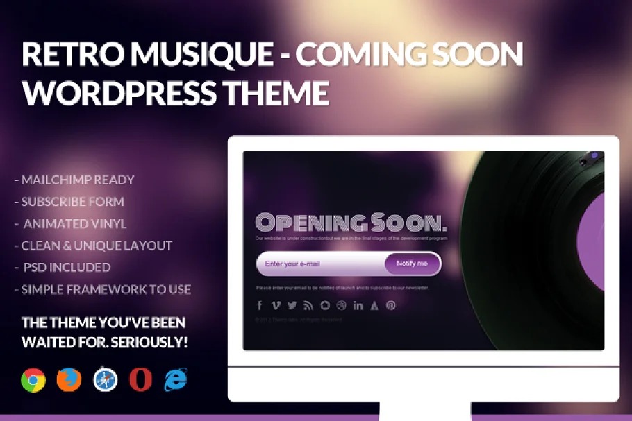 This topic is truly straightforward customization utilizing new advances like HTML5 and CCS3. It’s truly simple to arrangement, oversee and alter Retro Musique Coming Soon Theme!