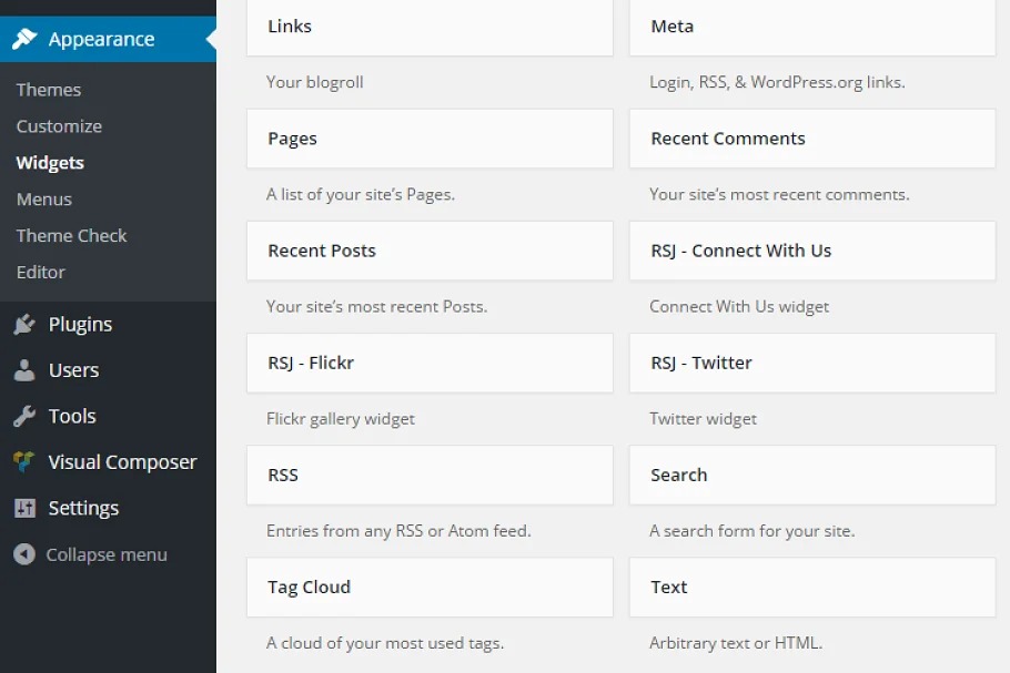 WordPress Theme full element list