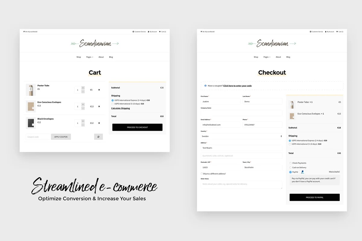 ✔ WooCommerce. WooCommerce upholds heaps of usefulness to sell any sort of item (Simple Products, Grouped Products, External/Affiliate Products, Variable Products and Virtual/Downloadable Products). Set up installment passages, programmed charges, transporting zones and significantly more. Scandinavian has consistent incorporation with both WordPress and WooCommerce.