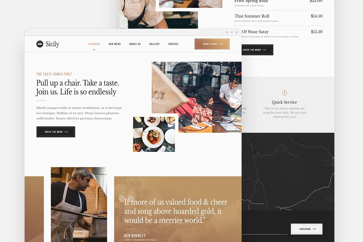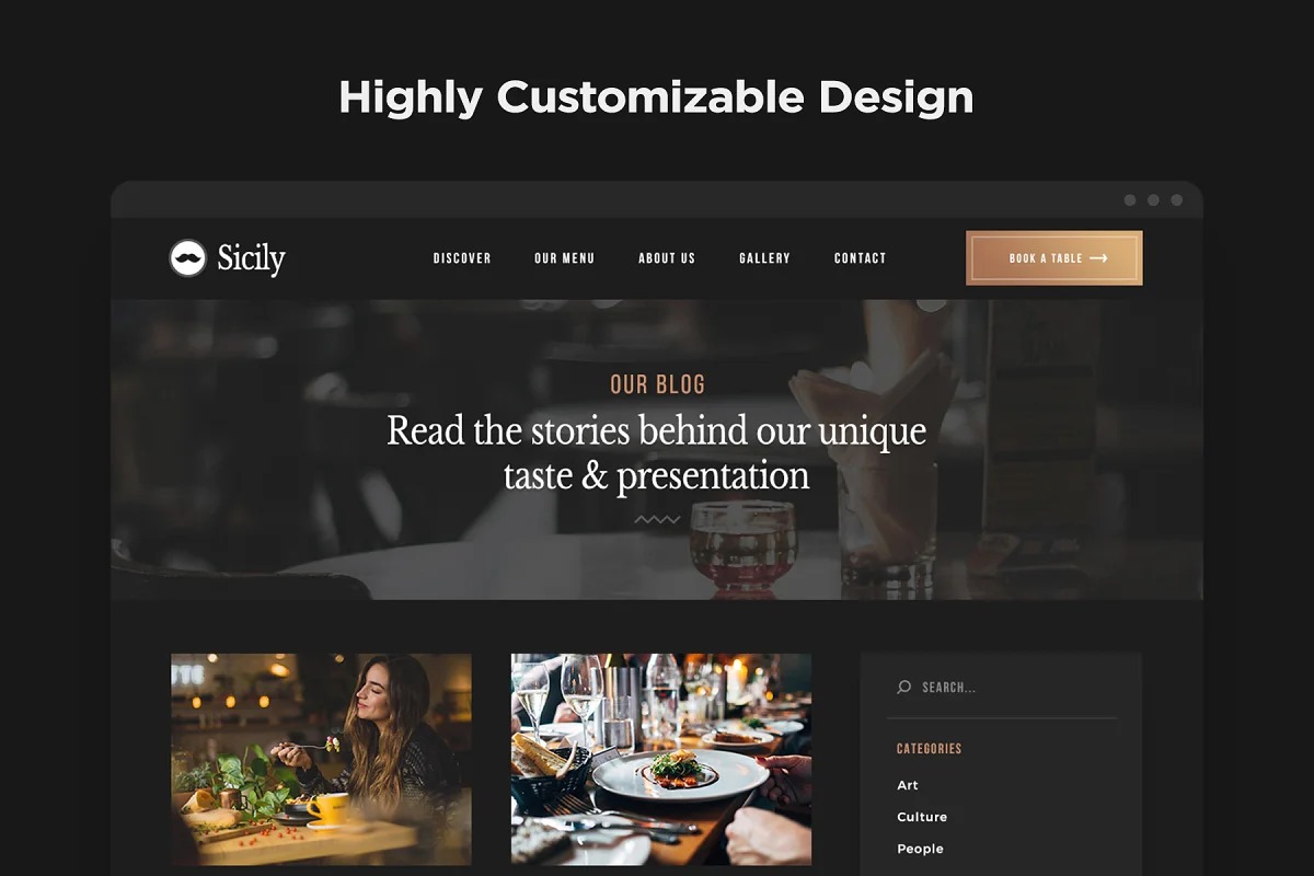 Sicily is a shocking web composition for eateries. It accompanies a scope of components intended to help you construct the rich web experience your café merits.