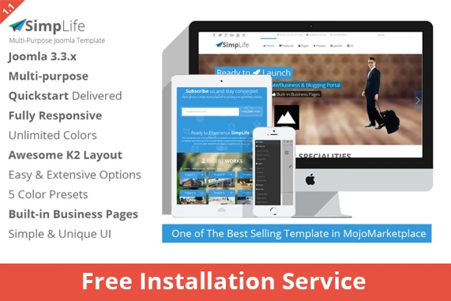 SimpLife is a Multi-reason, Clean, Super-adaptable and Fully Responsive Joomla! 3.3.x Template, Suited for a wide range of Business/Corporate and Blogging Websites. SimpLife Built with Next Generation Expose Framework. You will get Lots of Cool, Easy and Extensive Customization Options in back-end thus, you can Modify Layout, Styling, Colors and Fonts Easily.