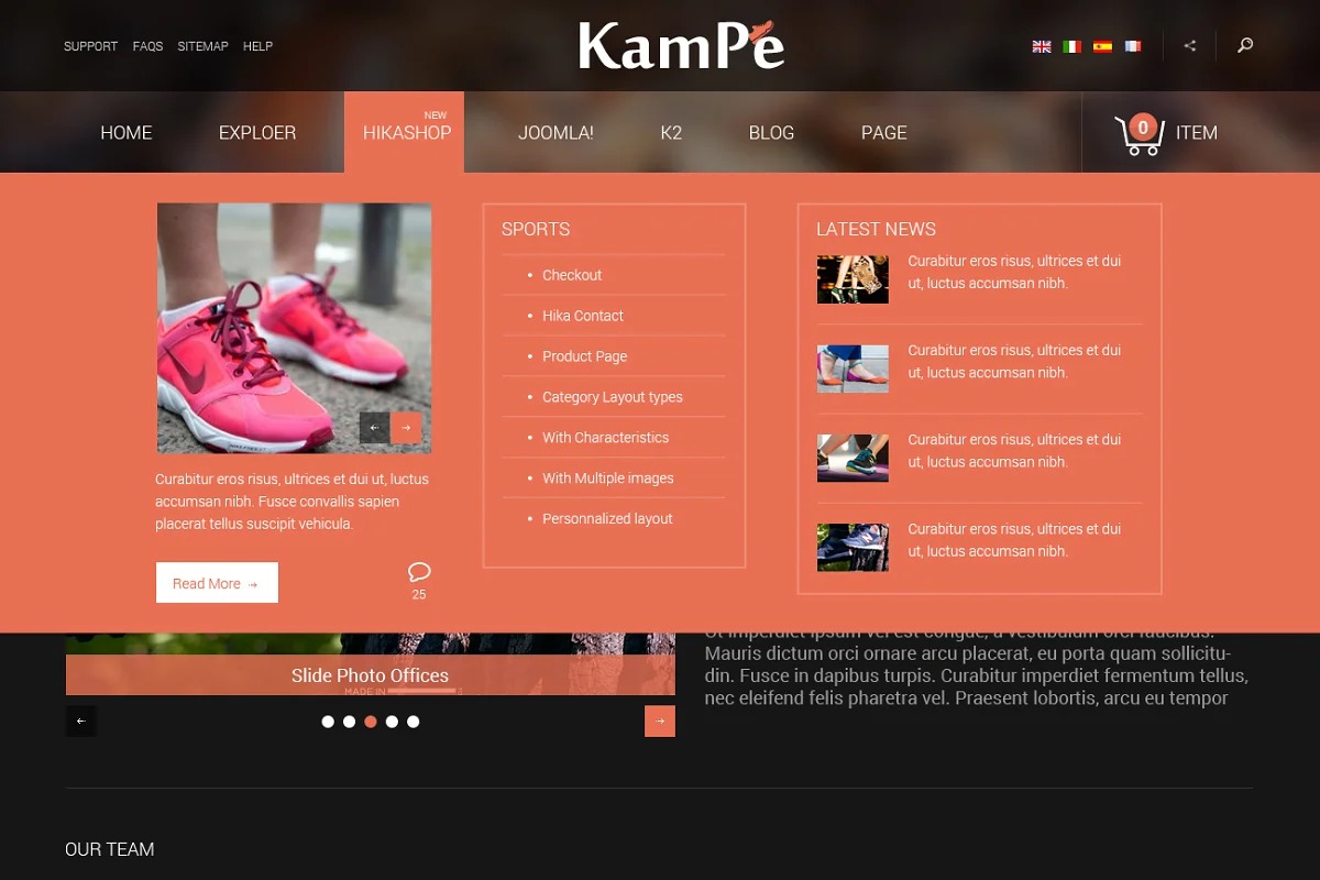 SJ Kampe is based on the amazing Joomla layout structure – YT Framework, which makes your site completely responsive, incredible eCommerce arrangement – HikaShop and K2 part – the best substance augmentation. The rich format is additionally outfitted with numerous components that make your site working flawlessly: Large Slider with smooth progress impacts, SJ Responsive Listing with limitless loader for showing items, multi-language, RTL language, heaps of shortcodes and 8 exceptionally adjustable extra pages…
