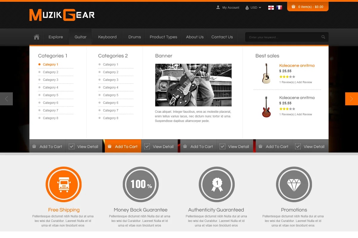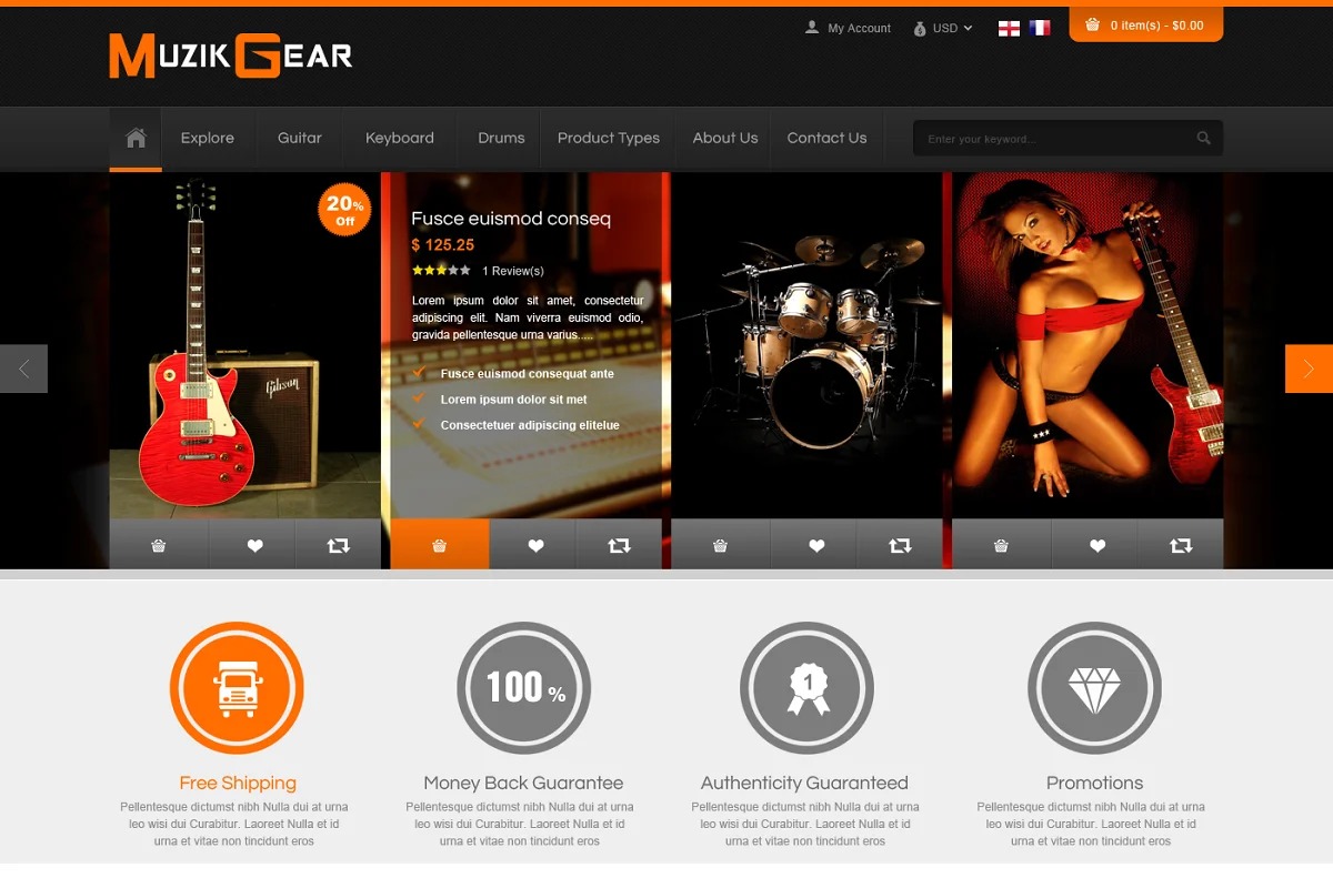 Radiates through with light and strong plan, alongside 5 shading plans and 3 kinds of design, supporting RTL language and different substance types. SJ Muzik is truly reasonable for music gear store like guitar, bass, drum, consoles, vocal accessories….Furthermore, this is a multi-reason topic, you likewise can simple to tweak for any item range.