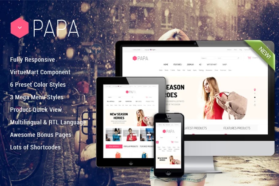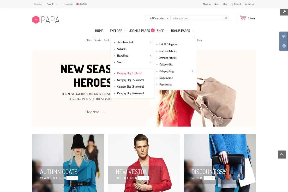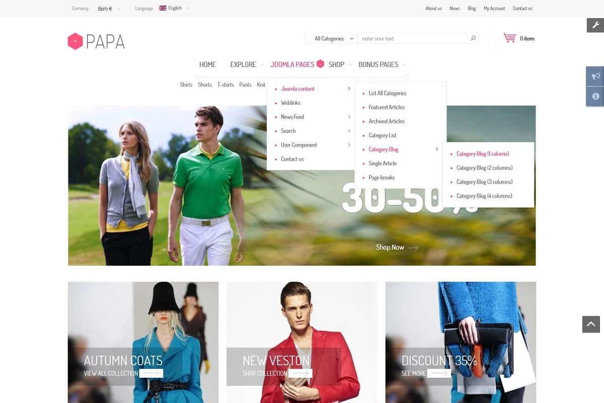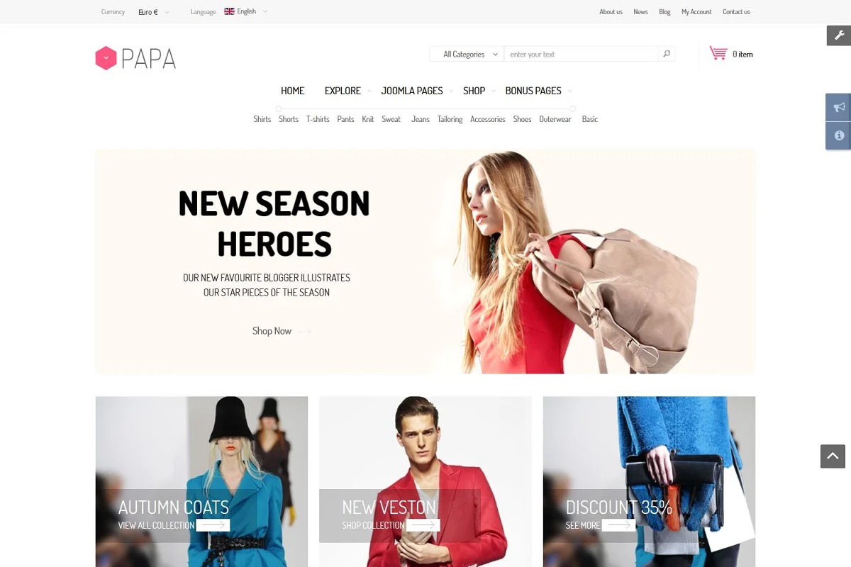 SJ Papa – Great responsive Joomla layout for eCommerce destinations.