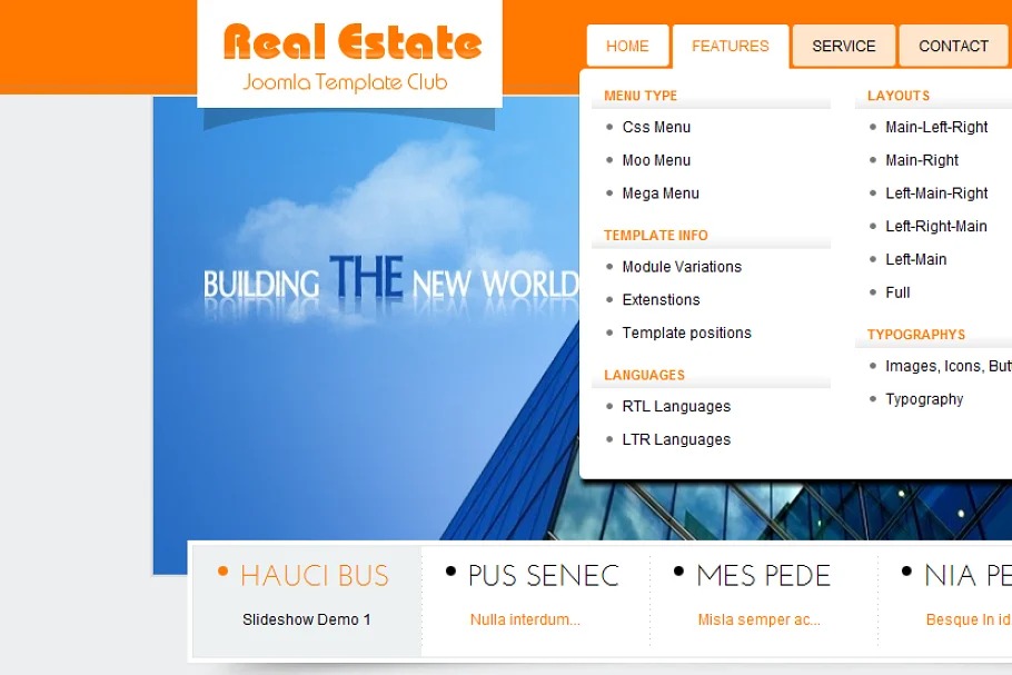 In this format, we utilized Yt Content Mega Slider for slideshow on the highest point of layout, Yt Content Slideshow for showing highlighted projects. Furthermore, with Yt Mega Menu, you can make an eye-getting menu with numerous classifications of activities. In detail locales, we backing to apply spring up picture highlight for articles by utilizing Yt Mega Popup Plugin. Furthermore, there are numerous free expansions which we utilized in the SJ Real Estate Joomla layout.