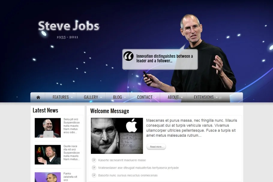 Roused from Steve Jobs’ life, our group chose to make a Joomla format which is especially utilized for Personal destinations. We upheld a few expansions for quickstart record and you can perceive how we mastermind them on our landing page for reference: