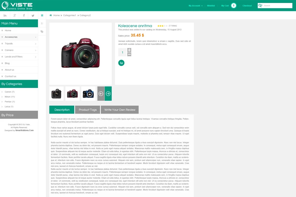 More than that, this topic is empowered with eCommerce elements of Virtuemart segment and a wide scope of incredible expansions: Matrix Slider with one of a kind plan, Flat Menu – a straightforward, yet amazing menu, SJ Responsive Listing for Virtuemart with limitless loader for showing items… Responsive joomla layouts SJ Viste offers all that you need in an online webstore, it appears to be truly reasonable for a PC store, camera store, portable store…