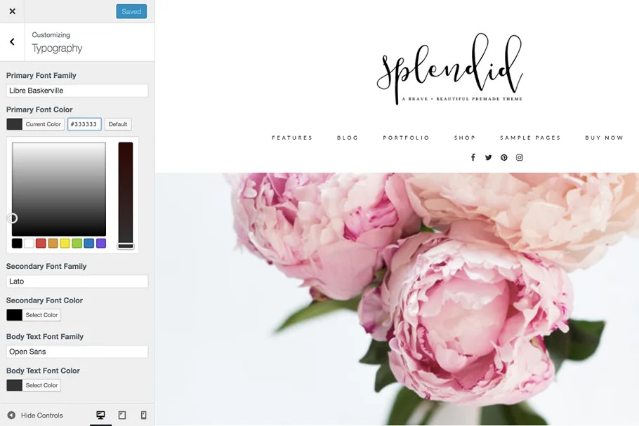 /Easily tweak tones, text styles and a few design settings in the WordPress Customizer