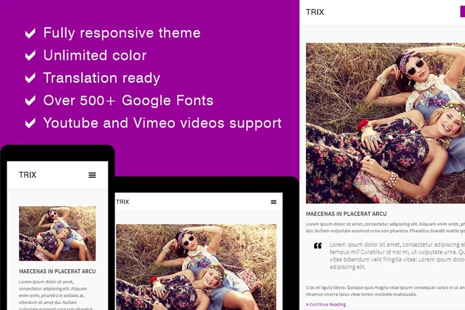 TRIX is a Responsive WordPress Blog Theme with moderate plan and amazing administrator alternatives. You can post sound, video, photographs and offer with individuals.