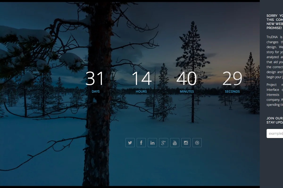 TruDNA is a straightforward, simple to adjust bootstrap add-on format that shows the magnificence of basic interface plan. This topic exploits the lovely MaxImage2 by Aaron Vanderzwan and HTML5 video backing to show a progression of dazzling scene photographs from UnSplash.com and a few recordings.