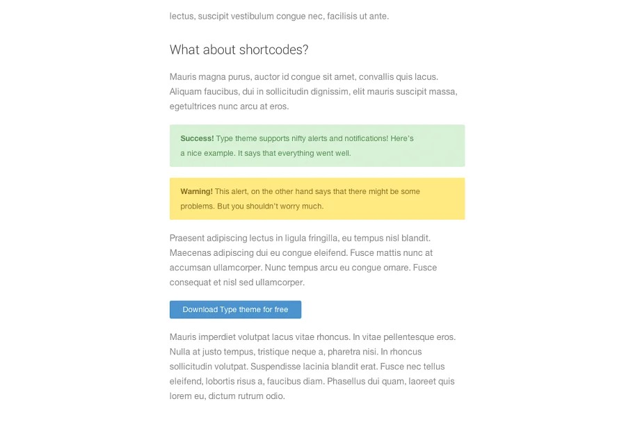 Shortcodes (alarms, button, code, pullquote)