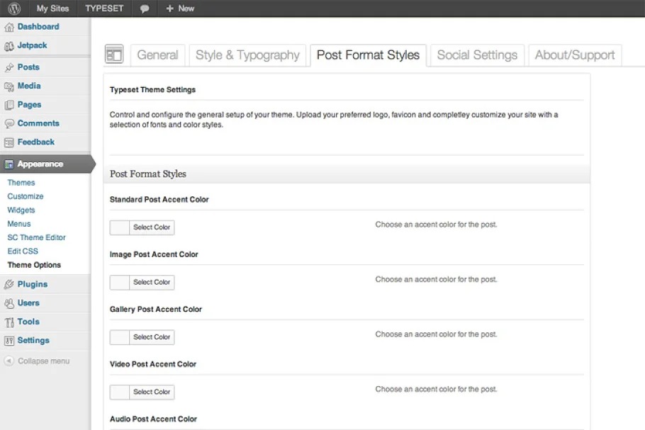WordPress Post Format Support Typeset completely upholds WordPress Post Formats including; Standard, Image, Quote, Link, Aside, Status, Gallery, Video, Audio and Chat!