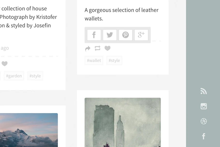 Uptown has an amazing slide-in sidebar that can highlight your most recent photos from Flickr or Instagram, your latest tweets, new plans on Dribbble, and then some.