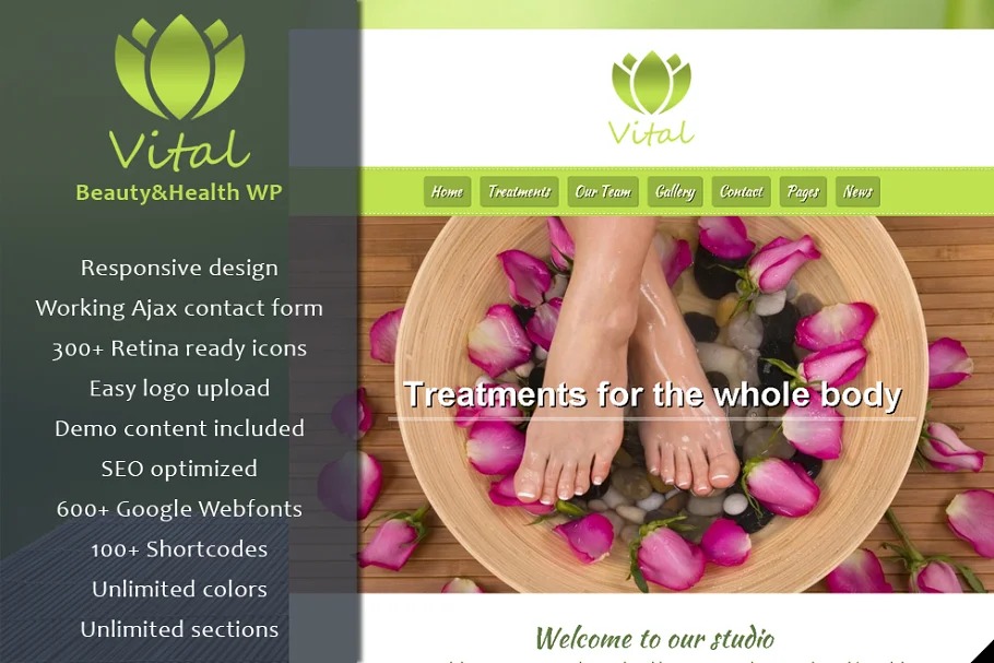 In the event that you are searching for the ideal WordPress topic for your spa, excellence or back rub salon, hair style, wellbeing, yoga and other different business, at that point Vital subject is for you. Regardless of whether it was initially intended for wellbeing and excellence sites, it very well may be handily adjusted to any sort of site because of the relative multitude of highlights the subject has. Utilization Vital Theme was intended for spas, salons, medical care, knead parlors, day spas, clinical business, rub focus, excellence focus and magnificence therapy organizations sites. Shortcode Generator Shortcodes are incorporated into Shortcode Generator, which gives you helpful interface to assemble your pages. You don’t need to recollect all of shortcode names – simply select required square and fill in the alternatives. Progressed Typography Options You can without much of a stretch switch textual styles for all content components utilizing our Options board. Every text style accompanies see, so you can be certain, that you have picked right. Speedy Install and Demo Content Import Vital is prepared to use from the container. Rapidly introduce it through FTP or WordPress and after you actuate it you can stack demo content. At that point you can include your own substance previously planned pages. Broad Documentation Thorough and nitty gritty documentation is incorporated. Custom Backgrounds for Every Page Custom Backgrounds highlight permits you to set a custom foundation for each page (or post) just as set up a default foundation for any remaining pages/posts. Coded with Care The subject uses HTML5 and CSS3 to make progressed styles utilizing the most recent advancements. Appropriate heading labels and coding norms are utilized to guarantee extraordinary site design improvement. Exceptionally Customizable Colors, Fonts and Background Vital was made to be not difficult to redo to coordinate with your marking from inside the WordPress administrator territory. It is likewise simple to Upload Your Logo. None of this requires altering code. Responsive Vital looks well on all gadgets like iPhone, iPad or huge screen. Search engine oriented Designed by HTML5 and CSS3 with upgraded code and efficient headings. Amazing Support This subject accompanies a broad assistance record that discloses how to set up each part of the topic. In the event that you experience any issues or simply have an inquiry in the wake of buying the subject head over to the committed help site. Mainfeatures More than 100 Shortcodes + Shortcode generator More than 600 Webfonts Unlimited sidebars + sidebar generator Unlimited slideshows Unlimited Colors Transparent Backgrounds Transparent Gradients WordPress 3.8 prepared Unlimited Sections Fully adaptable – change all tones, textual styles and foundations with only a couple clicks Quickgalleries – make new page, transfer pictures and pick the “Quickgallery” layout and segments, all done! Transfer your own logo and favicon Custom CSS proofreader Custom Javascript supervisor Insert quick and simple your Google Anlytics code and Google Webmastertools code Extensive, simple to utilize and mark free administrator board W3C legitimate HTML code Many HTML5 and CSS3 highlights Unlimited Themeprofiles: save your settings, fare, import or reload it Fully viable with YOAST SEO, W3 Caching and Form7 modules Working Ajax contactform