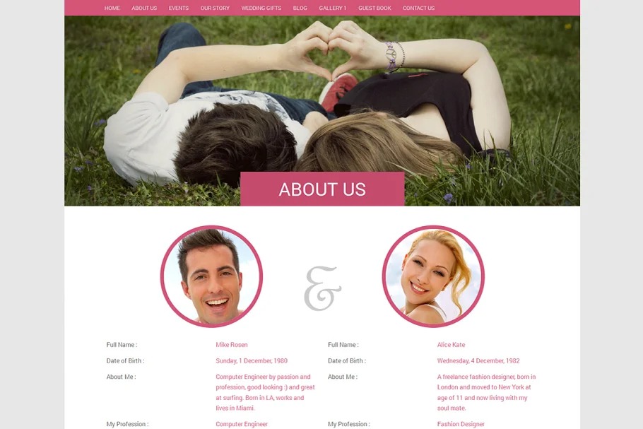 About Us Page – A joined about us page for lady of the hour and lucky man