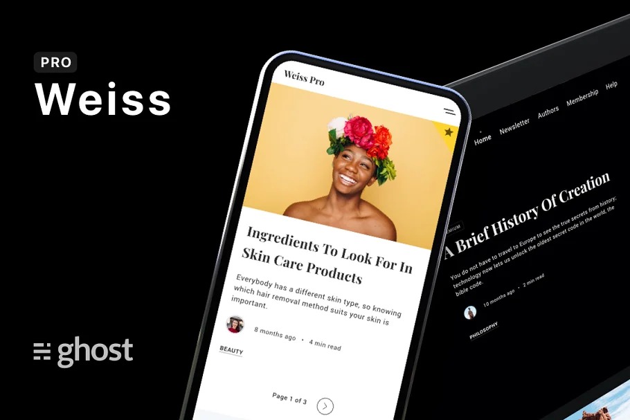 Weiss Pro is a superior Ghost topic that stands apart for its rich plan in the two its light and dull renditions. It’s completely responsive, this implies that it works and looks incredible on any gadget, the substance of any blog looks phenomenal with this topic.